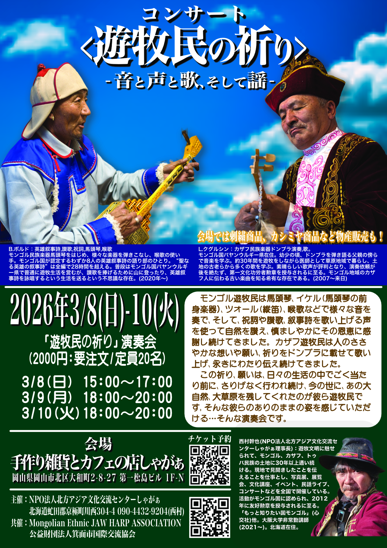 お店は1月のモンゴル語講座&遊牧民の噺<遊牧世界シャッフルトーク>をやったあとの2月はお休みになります…。NPO法人北方アジア文化交流センターしゃがぁのイベントツアーが目白押しで、2月は東京方面でいろいろやっている […]