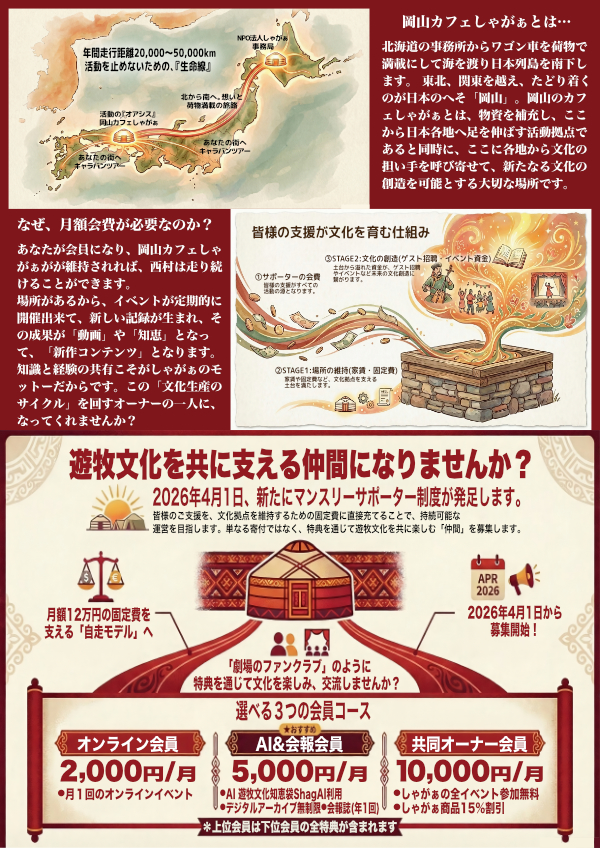 月々の店の運用費として10万円を目標として、一口2000円からのマンスリーサポーターを募集します!