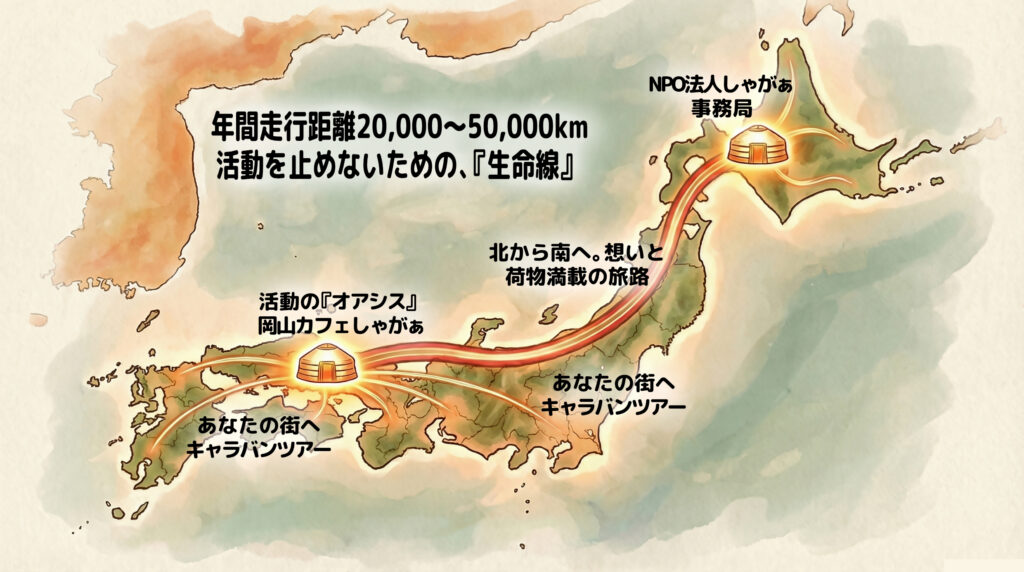 この場所があるから、私は年間20,000~50,000km(地球1周以上)を走りきり、日本の隅々まで遊牧文化を届けられるのです。